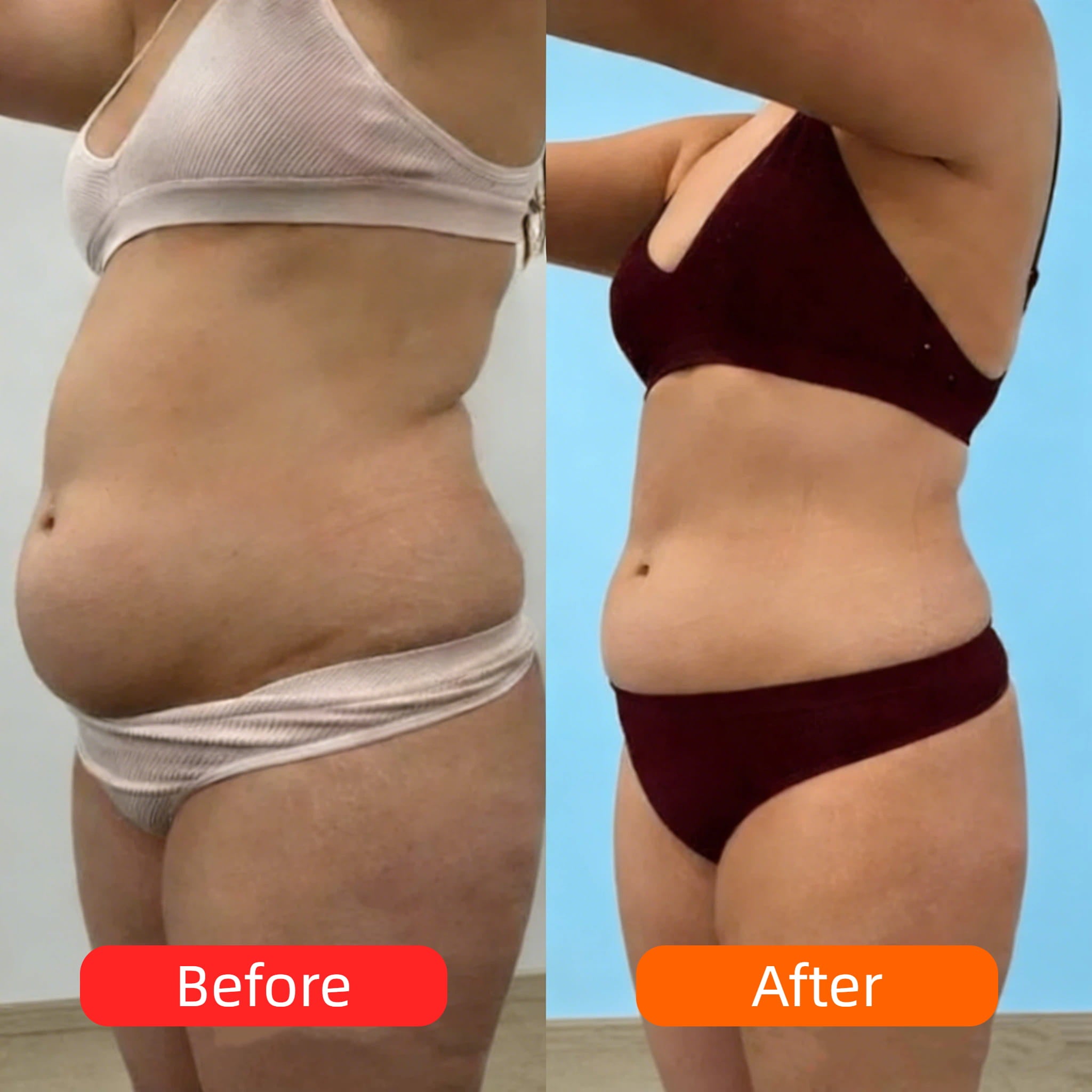 "I just have to share my Sunluxy transformation journey! On the left is me right after losing weight—my skin was saggy and lacked elasticity. On the right is me now. This body sculpting device truly helped lift the “dropped”flesh back up. Not only is my stomach flat now, but my abs are much more defined, and my entire body looks significantly firmer!"